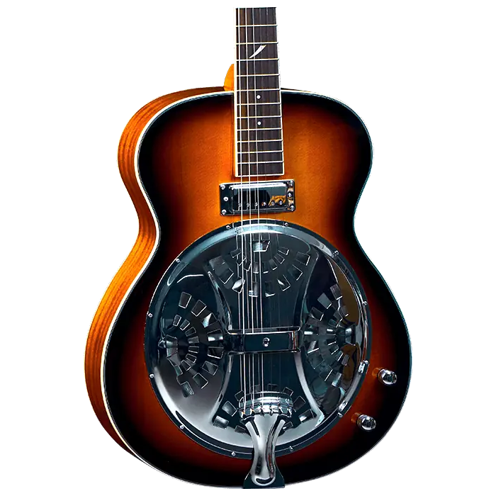 - Tamaño: Auditorio grande- Categoría: Folk electroacústico- Puente: aluminio- Color: Sunburst- Cuerdas: Metal- Cuerdas originales: Eko Bronze 11-52- Diapasón: Rupia sudamericana - 650 mm- Electrónica: Mini-Humbucker con controles de volumen y tono- Acabado : Brillante- Herrajes: Cromados- Tapa : Abeto- Fondo y lados: Sapelli- Mástil : Caoba- Anchura selleta : 43 mm- Clavijas : Abiertas, acabado níquel, botones Butterbean- Número de cuerdas: 6- Número de trastes: 20- Especificaciones adicionales : - Cono resonador metálico tipo araña