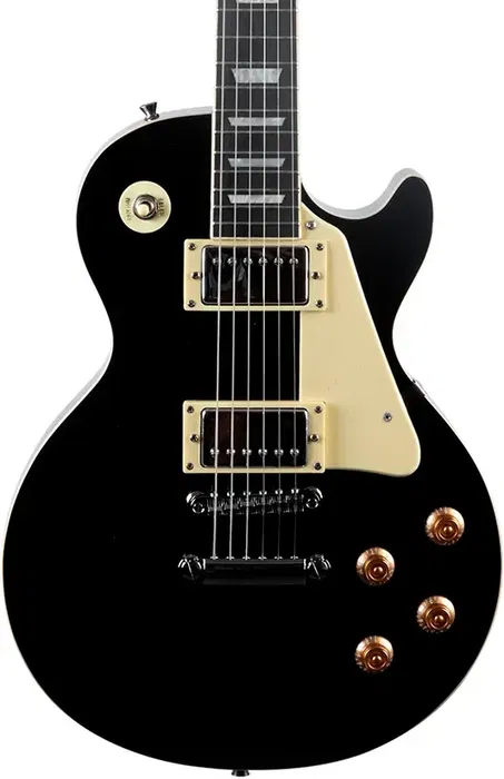 - Herrajes: Cromados- Categoría: Eléctrica de 6 cuerdas- Puente/cordal: Tune-o-Matic, Stop tailpiece- Cuerdas originales: Eko 10/52- Cuerpo: Álamo- Color: Negro- Diapasón (mm): 630 mm- Escotadura: Simple- Electrónica: Pasiva- Filetes: Blancos- Acabado: Brillante- Formato: Les Paul- Forma del mástil: C de perfil bajo- Ancho en la cejuela: 42 mm- Mástil: Arce- Clavijas: Diecast- Pastilla puente: Humbucker- Pastilla mástil: Humbucker- Número de cuerdas: 6- Número de trastes: 22- Número de pastillas: 2- Radio: 14 pulgadas- Ajustes: 2 x volumen, 2 x tono- Marcadores: Bloque nacarado- Selector: 3 posiciones- Varilla de ajuste: Doble sentido- Diapasón: Laurel- Especificaciones adicionales:- Placa protectora: Blanca con aspecto envejecido- Acabado del cuerpo: Brillante- Acabado del mástil: Brillante