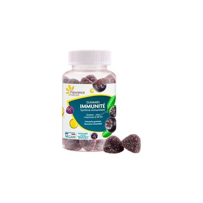 FLEURANCE NATURE Gummies Inmunidad 60 Gummies / 30 Dias - Refuerzo Defensas Naturales, Vitamina C, D3 y Zinc, Sabor Grosella, Vegano