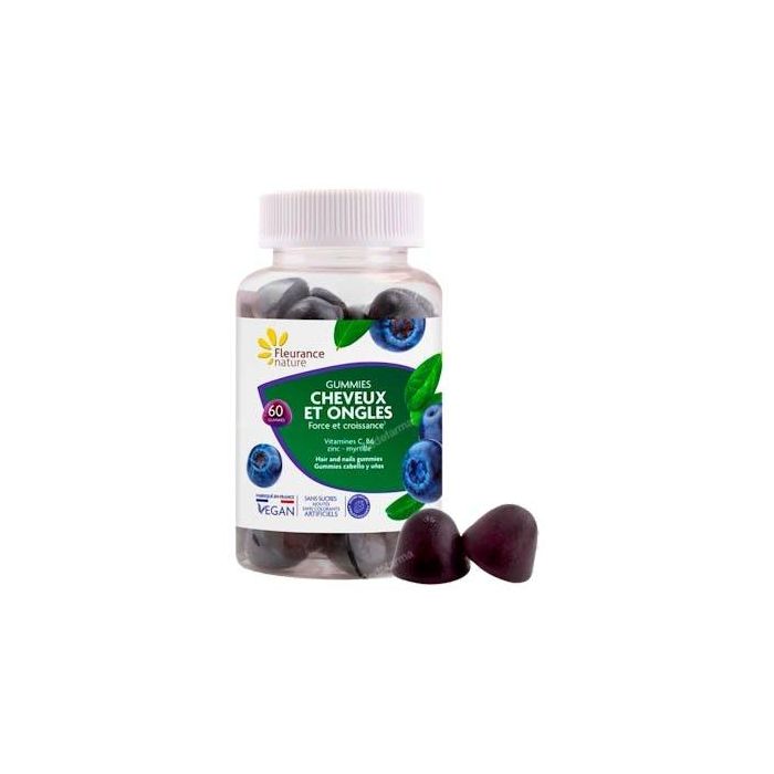 Indicaciones: Estas gominolas para cabello y uñas combinan un extracto vegetal, dos vitaminas y un mineral: El zinc ayuda a mantener un cabello en condiciones normales, mientras que el arándano favorece la microcirculación del cuero cabelludo. La vitamina B6 favorece la producción de cisteína, un aminoácido esencial para la creación de queratina, y la vitamina C completa la fórmula. Estas gominolas con delicioso sabor a frutos rojos no contienen azúcares añadidos ni colorantes artificiales. Este producto es apto para personas que siguen una dieta vegana.
