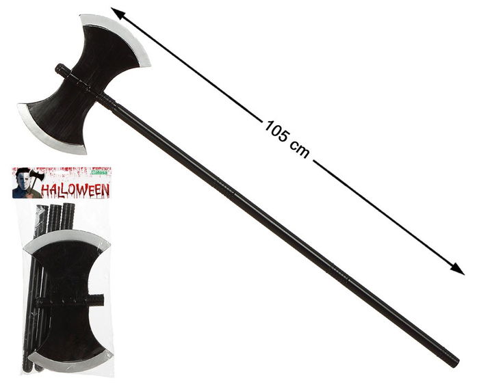 Hacha Decorativa Desmontable Doble Hoja Negra 105 cm Halloween Accesorio