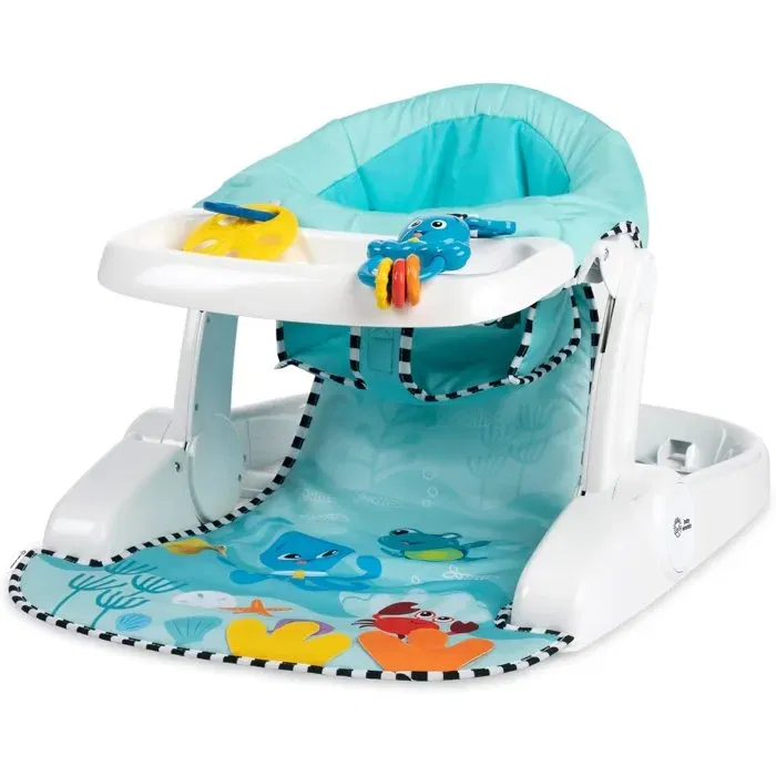 Sea of Support 2-i-1-sätet från Baby Einstein är det värdefulla hjälpmedel som barnet behöver för att lära sig att sitta. Den har 2 sitthöjder, 2 avtagbara sensoriska leksaker och en texturerad madrass för barnets komfort. Kompakt och lätt att förvara, den är också skalbar och kan användas från 4 månader. Den BPA-fria tabletten kan förvaras under sätet.