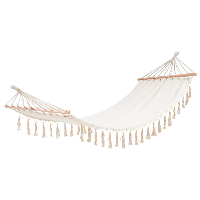 Ver todas las marcasOutfit Hamaca de Polialgodón Blanca con Flecos 200x80 cm y Barra de Madera