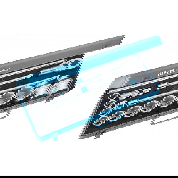 Hazet Juego de Llaves de Tubo 1002, 3/4 Pulgada, 18 Piezas, Azul con Llave de Carraca Reversible