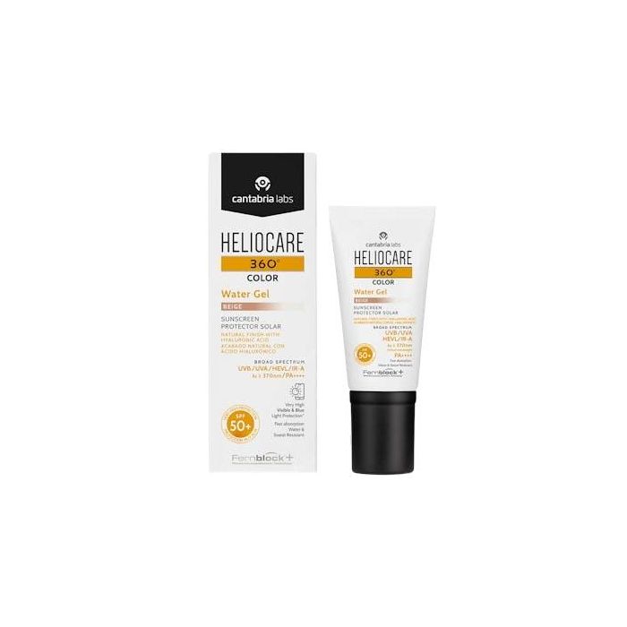 Heliocare 360° Aqua Gel Color SPF50+ Protector Solar Facial con Color Tono Beige | Base de Maquillaje Hidratante y Unificadora 50 ml