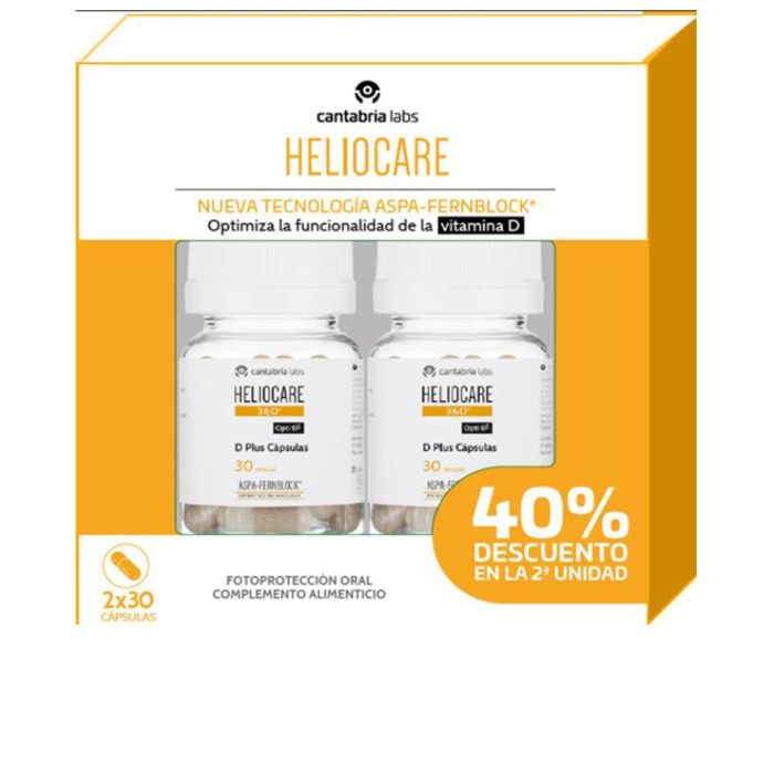 Heliocare HELIOCARE 360° D PLUS Oral Cápsulas con Vitamina D y Fernblock®+ - Pack de 2 x 30 Unidades
