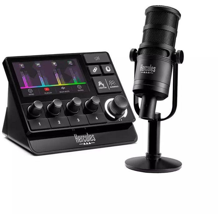 Hercules 4781070 Kit Essentials Stream XLR con Controlador Stream 200 y Micrófono HXD-700 para Streaming Profesional