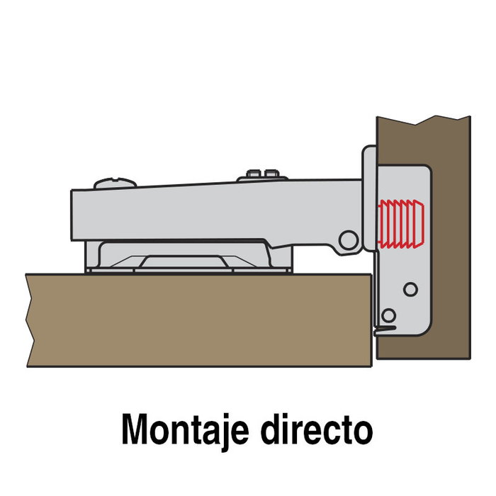 Tiene un diámetro de cazoleta de 35 mm y una profundidad de 10 mm (MD10). Esta bisagra se adapta a una amplia variedad de frentes de puerta. El sistema RT (Retención Total) garantiza que la puerta se mantenga cerrada sin necesidad de imanes, muelles externos ni otros accesorios de cierre.