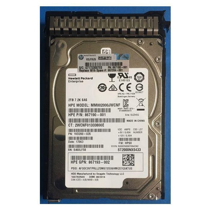 Hewlett Packard Enterprise Disco Duro HDD 2000 GB 2.5" 7200 RPM