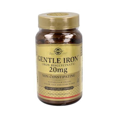 HerbalesHIERRO GENTLE 20mg. cápsulas vegetales, HerbalesDescubre las cápsulas vegetales HIERRO GENTLE 20mg. de SOLGAR, una magnífica alternativa para aquellos que experimentan malestar al consumir suplementación de hierro convencional, como estreñimiento y problemas digestivos. Esta fórmula innovadora incluye hierro bisglicinato, una forma de hierro diseñada para ofrecer una fácil absorción sin causar irritación estomacal.