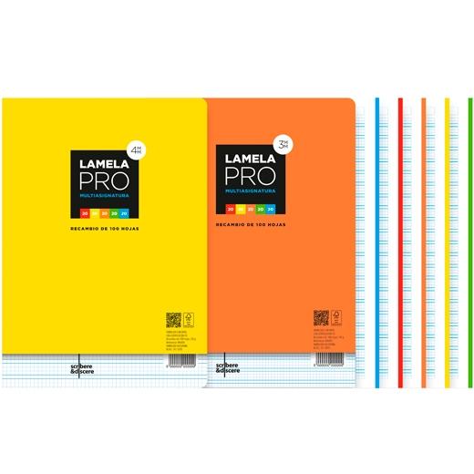 Lamela Recambio Pro 100H A4 90 gr Cuadrovía 3 mm 5 Bandas Color 4 Taladros Offset Blanco (Set de 5) (Set de 5)