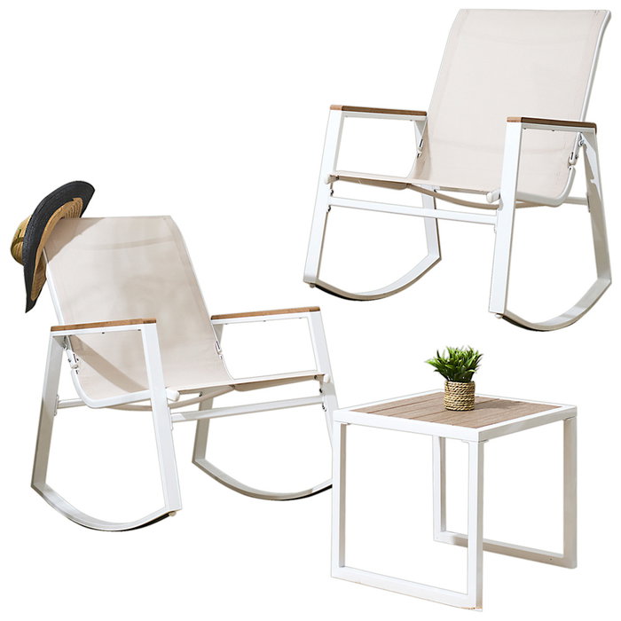 Home Deco Factory Conjunto de Jardín 3 Piezas Capri - 2 Butacas Mecedoras y Mesa Baja de Metal Epoxi y Plástico Resistente