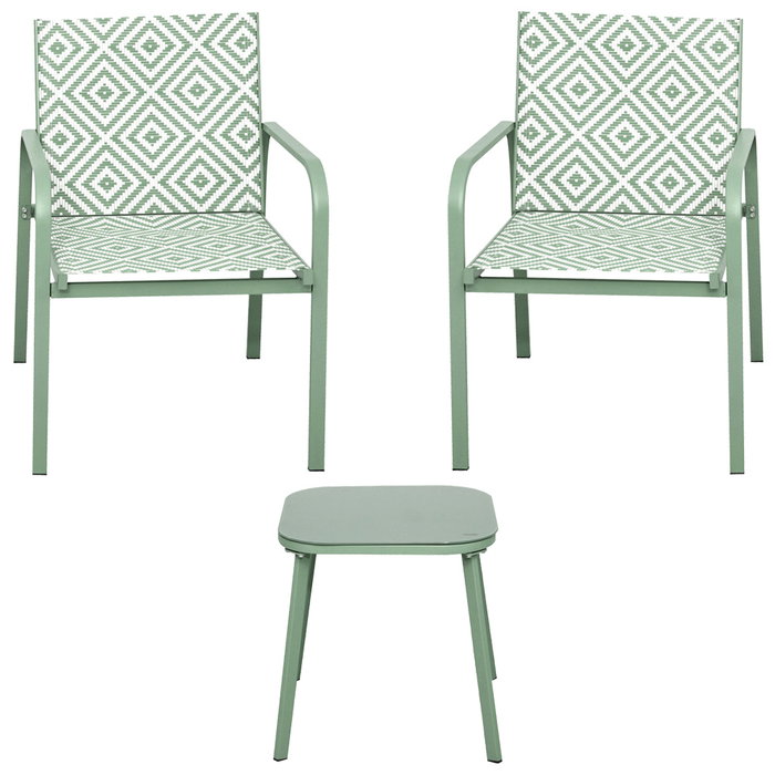 Home Deco Factory Salón de Jardín México Verde, 2 Personas, Mesa 45x45 cm, Acero Epoxy y Textileno UV
