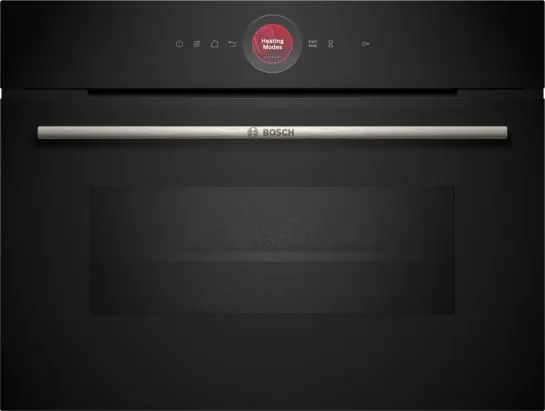 Bosch Serie 8 CMG7241B1. Tamaño del horno: Pequeño, Tipo de horno: Horno eléctrico, Total capacidad interior, horno (s): 45 L. Tipo de instalación: Integrado, Color del producto: Negro, Tipo de control: Tocar. Tipo de reloj: Electrónico. Carga conectada: 3600 W. Cantidad de lámparas: 1 lámpara(s), Tipo de lámpara: LED