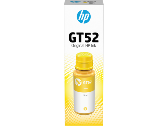 HP GT52 YELLOW BOTTLED INK CARTRIDGE para HP DeskJet GT 5800 series, HP Ink Tank 100, 300, 400 series, HP Smart Tank 200, 300, 400, 500, 600, 700 series Rendimiento ~8.000 páginas, 70 ml