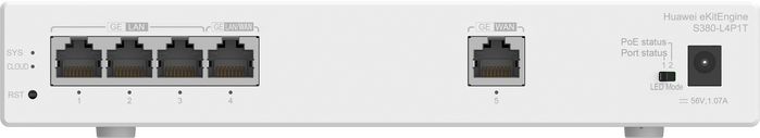 Huawei eKitEngine S380 series Multi-Service Gateway include various models, such as those with 4 downlink GE electrical ports, 8 downlink GE electrical ports (PoE/non-PoE ports), or GE uplink ports. With features like easy installation and deployment, as well as flexible Ethernet networking, the products can be widely used for indoor coverage in SME markets such as SOHO enterprise office, economic hotels, factories, primary and secondary education, and building security.