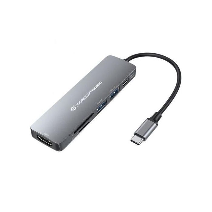 Conceptronic Adaptador USB-C 6 en 1 a HDMI 4K, USB-C PD 60W, USB 3.0, Lector SD/TF