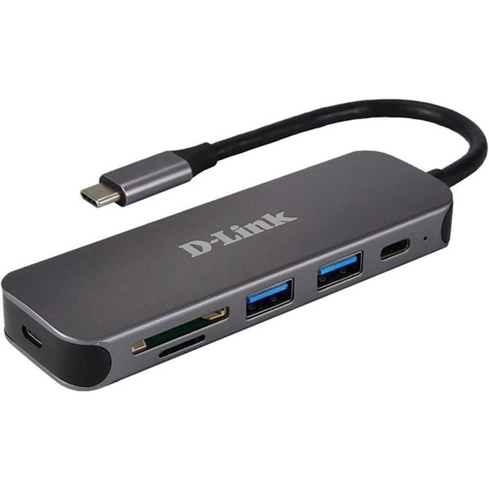 D - link Hub USB Tipo C 6 Puertos Gris Lector de Tarjetas SD MicroSD USB 3.2 Gen 1