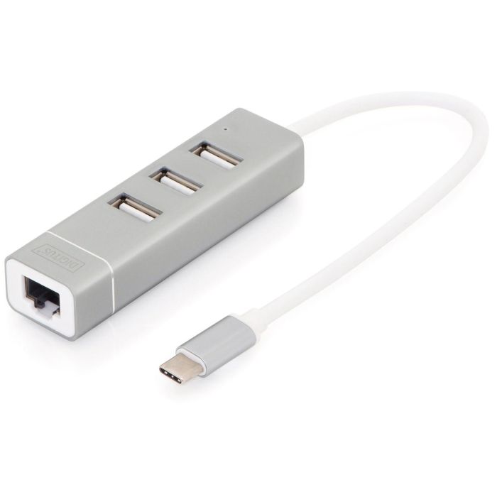 Digitus Adaptador USB 2.0 a RJ45 Ethernet y Hub de 3 Puertos, Conexión Type-C, Aluminio
