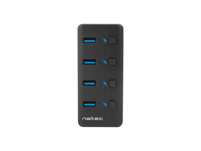 Natec MANTIS2 Hub USB 3.0 - 4 Puertos con Interruptor On/Off y Adaptador de Corriente - Velocidad 5000 Mbit/s - Negro ABS