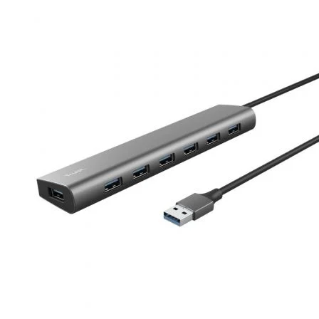 Trust Halyx Hub USB 3.2 Gen1 Gris con 7 Puertos USB-A y 1 Puerto USB-C