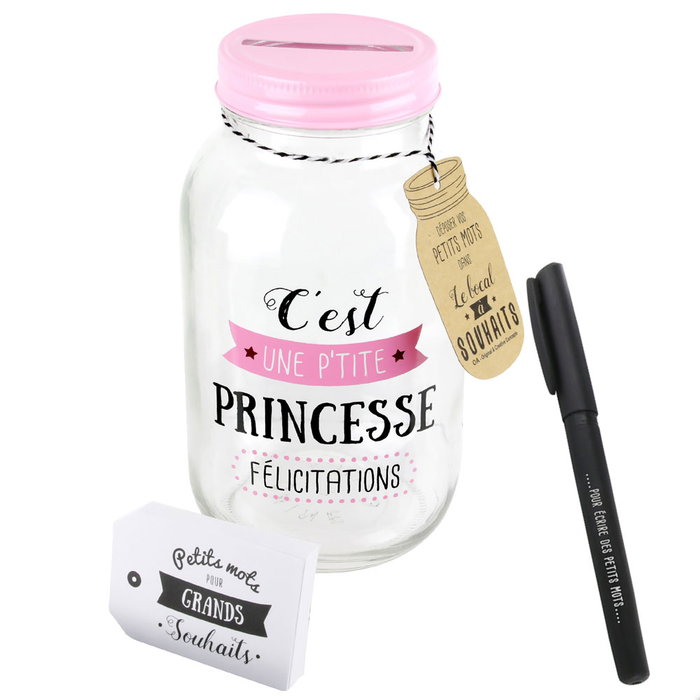 Dites-le avec des Mots Hucha Tarro Deseos Nacimiento Regalo Bebé Incluye 100 Etiquetas y Bolígrafo