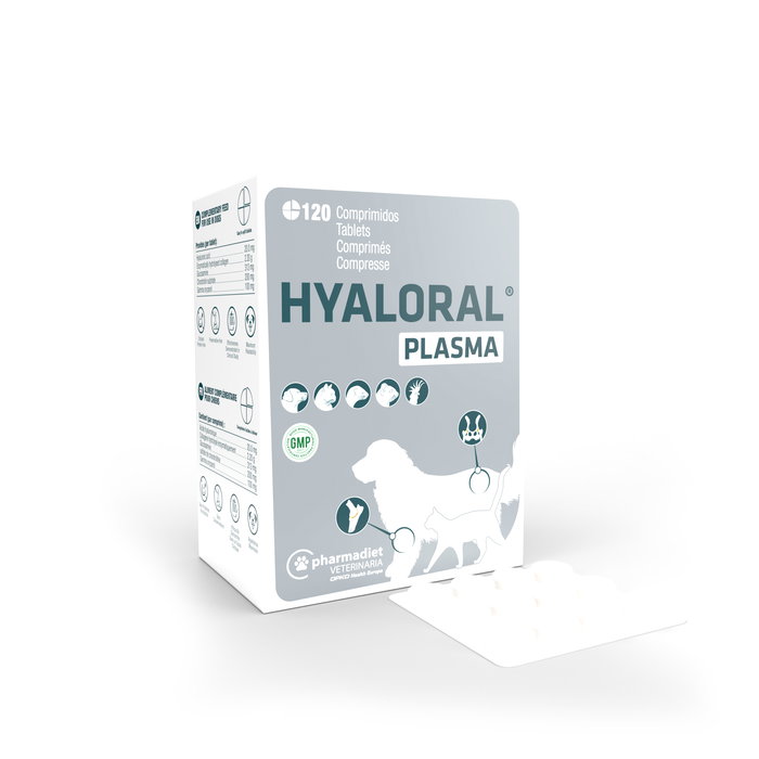 Hyaloral Plasma es un alimento complementario que, añadidos a la dieta habitual, contribuyen al desarrollo y mantenimiento de articulaciones, tendones y ligamentos y la respuesta inmunitaria general de la mascota.