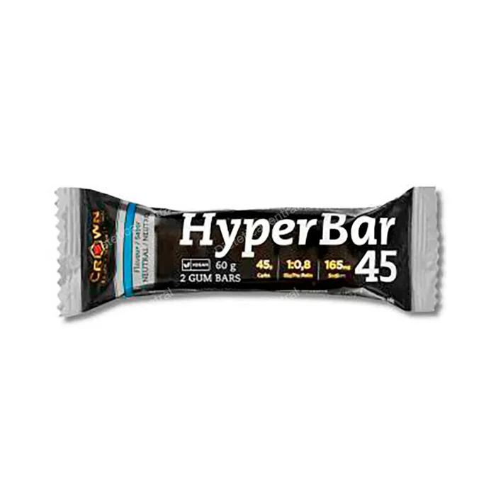 Indicaciones: HyperBar 45 contiene una mezcla idónea de hidratos de carbono, Glucosa y Fructosa, en ratio 1,25:1 (comúnmente conocido como 1:0,8), en este caso usando 3 ingredientes, la sacarosa (como fuente de glucosa y fructosa) y directamente jarabes de glucosa por un lado y de fructosa por otro. Se ha demostrado que en ejercicios prolongados el uso de carbohidratos que se absorben en el intestino por diferentes transportadores. Formato sólido de barrita, pero en forma de gominola. No contiene aromatizantes, ni edulcorantes, ni colorantes, ni conservantes. Sin cafeína. Sabor Neutro, sin aromas añadidos. Apto para Veganos.