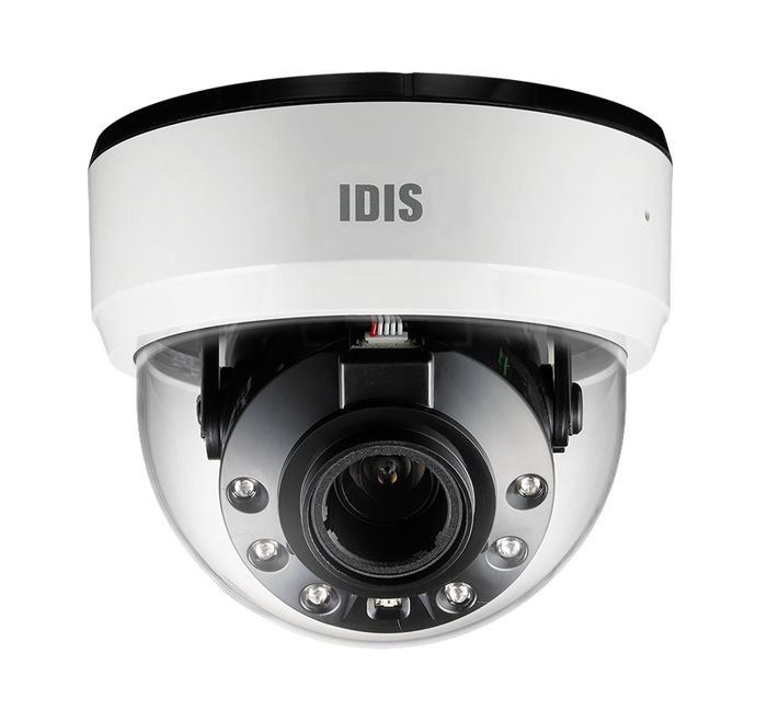Idis Cámara IP Minidomo 5MP 3-13.5mm IR30 WDR H.265 Interior 12V/PoE con Alarma y Audio