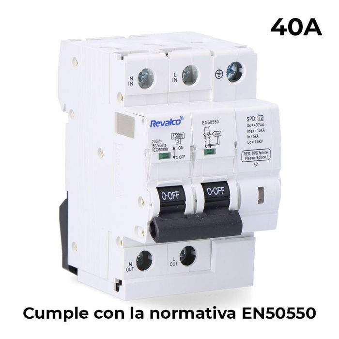 Revalco Protector de Sobretensión 2p 40a C 10ka Permanente EN-50550 Transitorio 5-15kA 275V