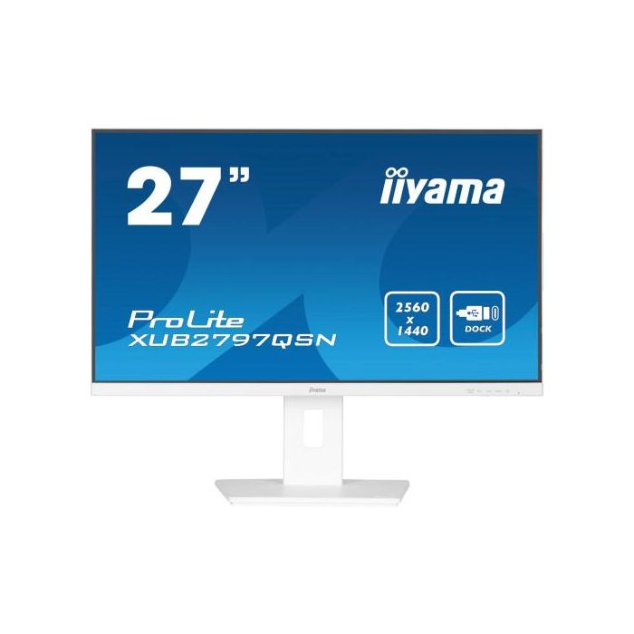 Iiyama XUB2797QSN-W2 Monitor 27" QHD IPS 1440p 1ms 300cd/m² con Dock USB-C 65W, 3x USB-A 3.2, Blanco