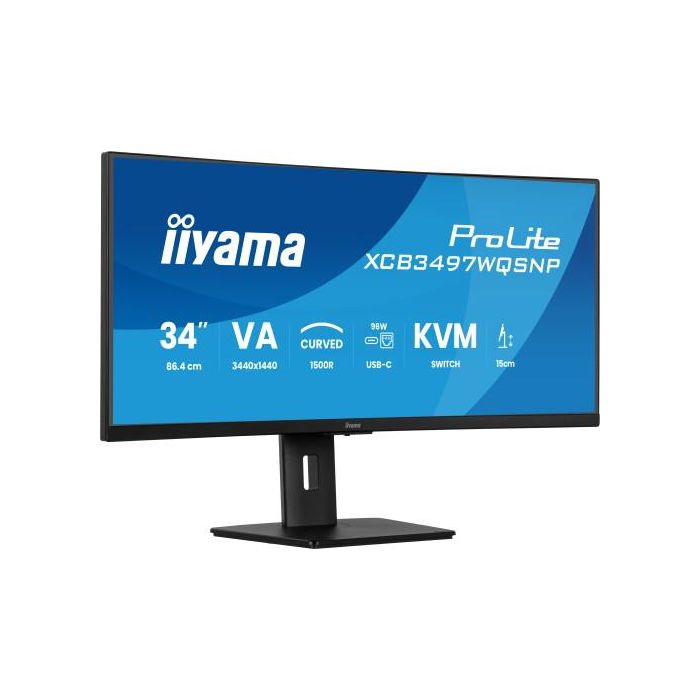 Iiyama Monitor Curvo 34" XCB3497WQSNP-B1, UltraWide Quad HD (3440x1440), VA, 1500R, 120Hz, 95W USB-C PD