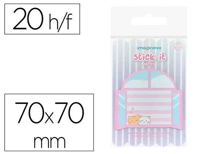 Haz que las tareas y recordatorios sean más divertidos con las notas adhesivas Imaginovo. Con un diseño fantasía, estas notas son ideales para niños, añadiendo un toque de creatividad y color a cualquier actividad. Características: 20 notas adhesivas. 70x70 mm. Ventana.