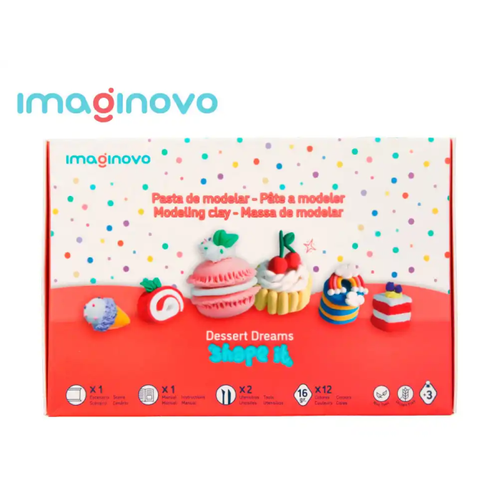 Imaginovo Pasta para Modelar Secado al Aire Set 12 Colores Shape It Dessert Dream con Herramientas e Instrucciones