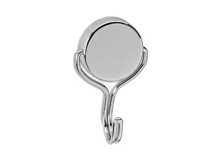 Fuerza magnética especialmente alta. Gancho, longitud aprox. 5,5 cm, giratorio, también se puede utilizar como gancho de techo o en pendientes. Paratodo lo que se pueda colgar, por ejemplo, para sujetar la ropa de trabajo en la taquilla metálica, para material decorativo, carteles o bolsas. Gan cho de acero ancho y curvado, con punta redondeada para evitar daños. Carcasa de acero.