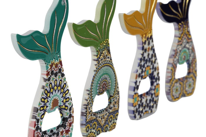 DKD Home Decor Iman Mediterraneo - Abridor Pez Decorativo en Colores Verde, Amarillo o Azul (0.7 x 14 x 8 cm) - Lote de 72 Unidades
