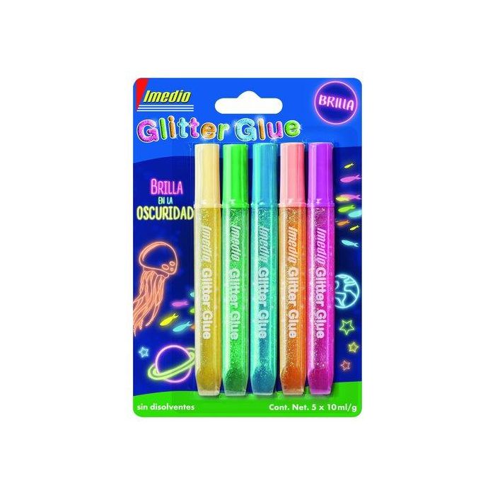 Imedio Adhesivo Glitter Glue Brilla En La Oscuridad Tubo 10 mL Blíster 5 C-Surtidos