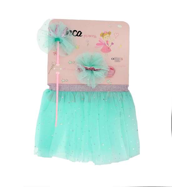 Conjunto princesa 3 piezas (tutú, varita y diadema elástica corona)