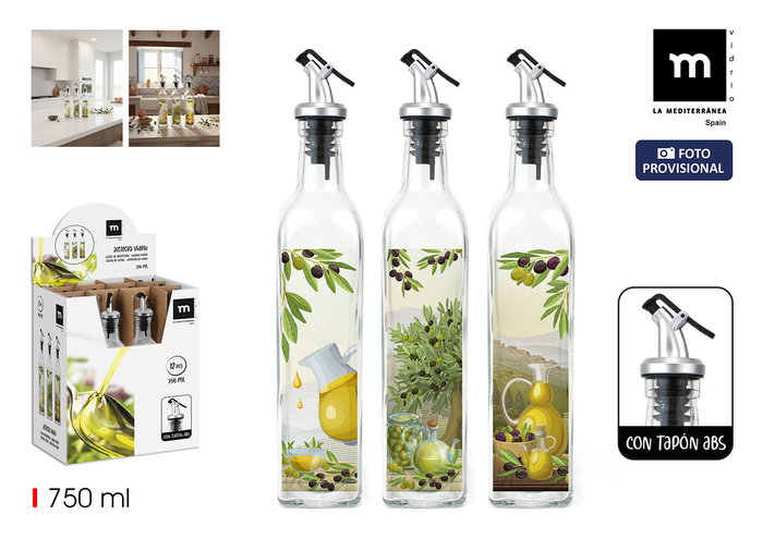 Aceitera Vidrio 750Ml C/Tapon Abs La Mediterranea