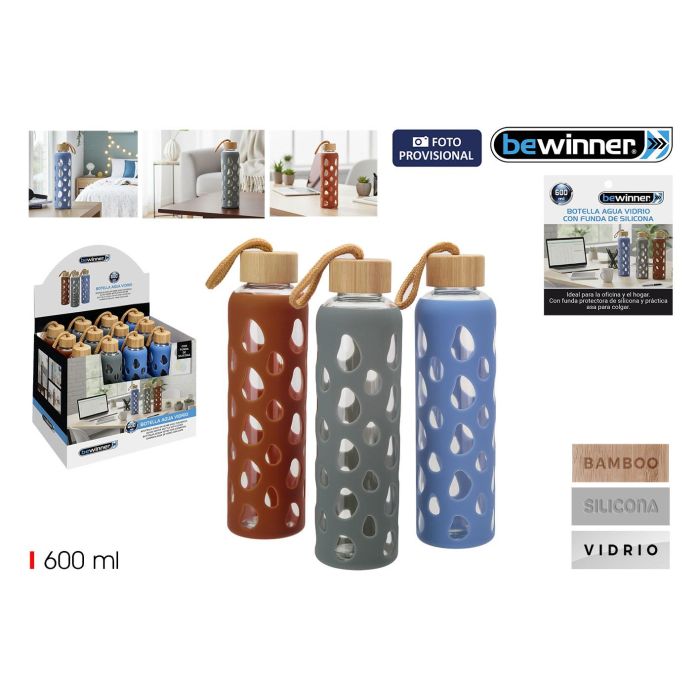 Botella Agua Vidrio/Silicona 600Ml Bewinner