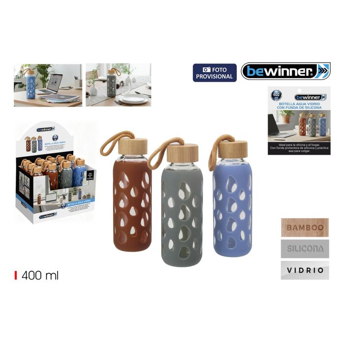 Botella Agua Vidrio/Silicona 400Ml Bewinner