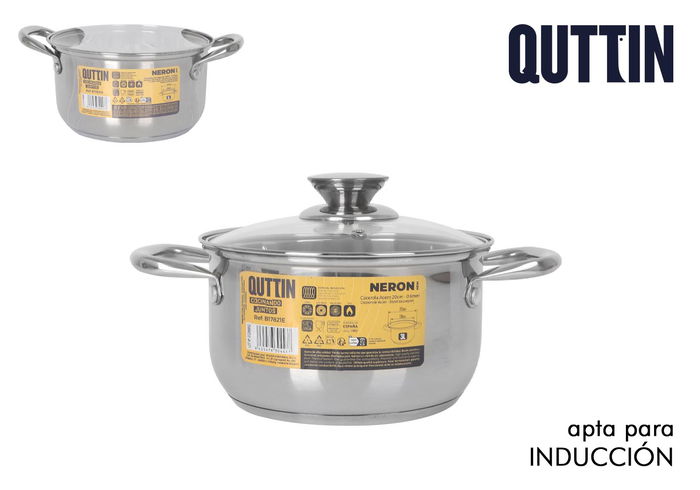 Inde Cacerola con Tapa New Ner, 18 cm (3 litros), Acero Inoxidable Industrial, 28x20x11 cm, 0.6 mm de grosor, 4.8 kg (6 Unidades)