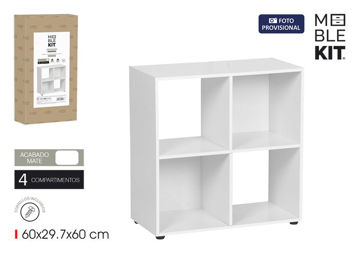 Inde Estantería Cubo 4 Compartimentos, Mueble de Almacenaje, Medidas 60x29.7x60 cm, Espesor 12 mm