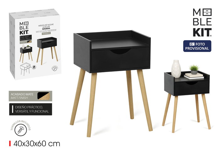 Mesita Noche Aux.C/Cajon Mad.Black Moblekit