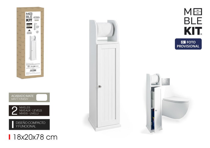 Inde Mueble Portarrollos de Papel Higiénico para Lavabo, Kit de Montaje, Dimensiones 21,1 x 7,8 x 80 cm (4 Unidades)