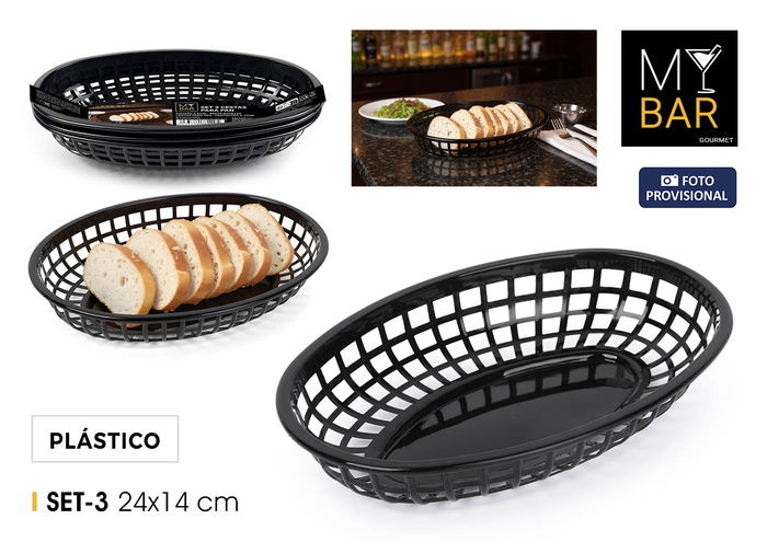 Set-3 Cestas Pan Oval Pp 24X14Cm My Bar