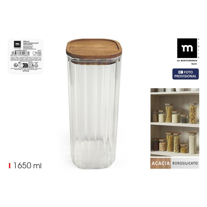 Inde Tarro Boro.Ottic.T/Acacia Cuad. 1650 ml - La Mediterran - Capacidad 1650ml, Medidas 10.2 x 10.2 x 25 cm (12 Unidades)