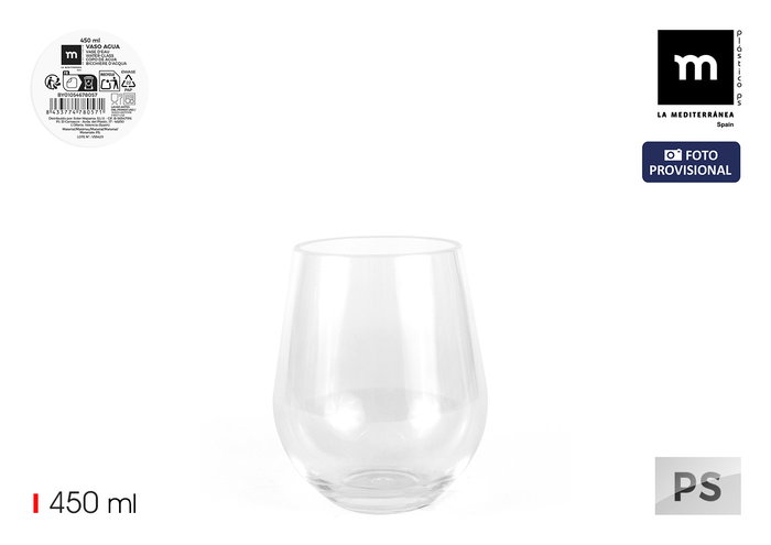 Inde Vaso de Agua La Mediterranea 450 ml, 10.4 cm Alto, Vidrio, para Agua, Jugo o Refresco (12 Unidades)