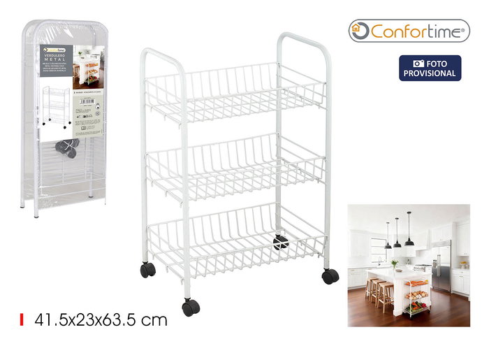 Inde - Verdulero de 3 Niveles en Metal, Color Blanco, Dimensiones 59.7 cm de Largo x 23.8 cm de Ancho x 6.5 cm de Alto (8 Unidades)