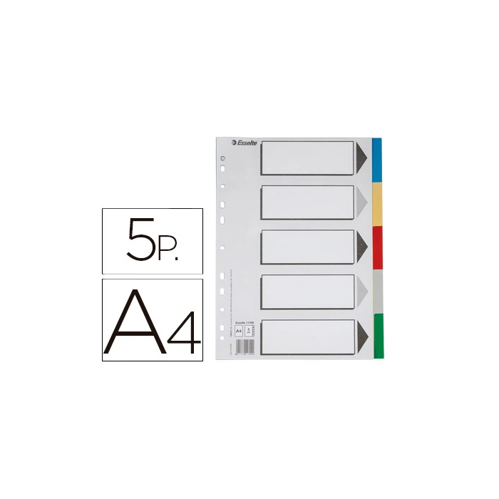Esselte Separadores A4 5 Posiciones PP con Carátula e Índice Cartón Blanco/Negro